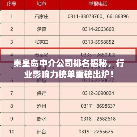 秦皇岛,作为河北省的重要沿海城市,近年来在经济、文化、旅游等方面取得了显著的发展成果,随着市场的日益繁荣,中介服务行业的角色愈发重要,各类中介公司如雨后春笋般涌现,本文将探讨秦皇岛中介公司的排名及其行业影响力。