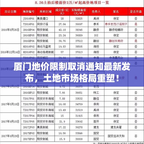厦门市政府发布了一项重要通知,宣布取消地价限制,这一决策立即引起了社会各界的广泛关注,成为热议的焦点,本文将对厦门取消地价限制通知的最新动态进行解读,并分析其对市场、购房者及房地产开发商的影响。